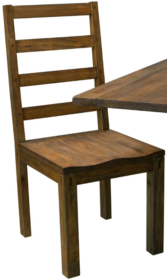 This Modern Rustic dining group is crafted from solid mahogany wood. This hardwood is a perfect choice for the vintage industrial style, due to its durability and exotic looks. The multi-tone finish features a lighter ginger-colored patina that resembles reclaimed wood.Read More