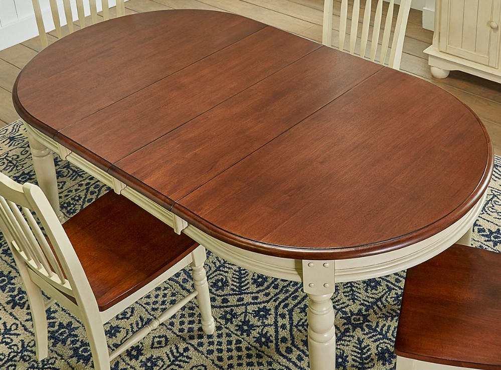 The solid hardwood British Isles collection is designed to appeal to those who want a traditional and country style at a great value. This two tone Merlot and Buttermilk is a nice updated look that compliments itself to many homes and styles especially in Coastal Areas. This collection features 2 chair styles, turned legs, 3 tables options, self-storing leaves to extend table space, and a server that includes a wine & stemware rack.