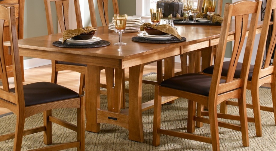 Inspired by the Arts & Crafts movement in style and craftsmanship, Cattail Bungalow is our updated version of this modern classic design in an amber finish. Stunning wood grain, cat tail cut outs in the dining chair backs and table trestles signify this unique look. Steam bent ergonomic chairs and leather upholstered seats make this collection supremely comfortable.