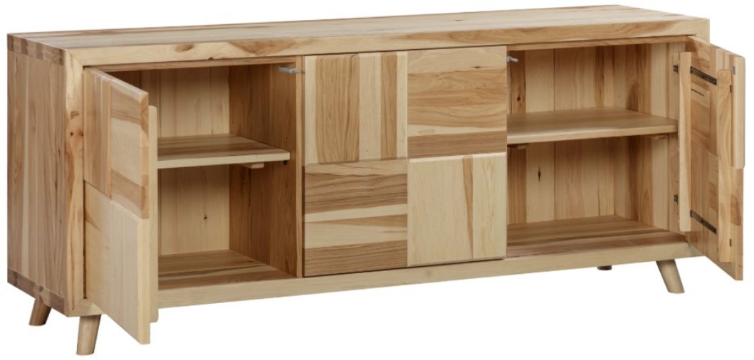 The Esmond Dining collection brings a sleek and contemporary style and feel to the dining room. The minimalistic design allows the natural beauty of the hickory to be the focal point. Rounded edges help soften the look and feel of the table. The modern aesthetic is carried over to the clean lines found on the server with minimalist legs. The coordinating chair design frames the upholstery to highlight the wood grain while providing ultimate comfort.