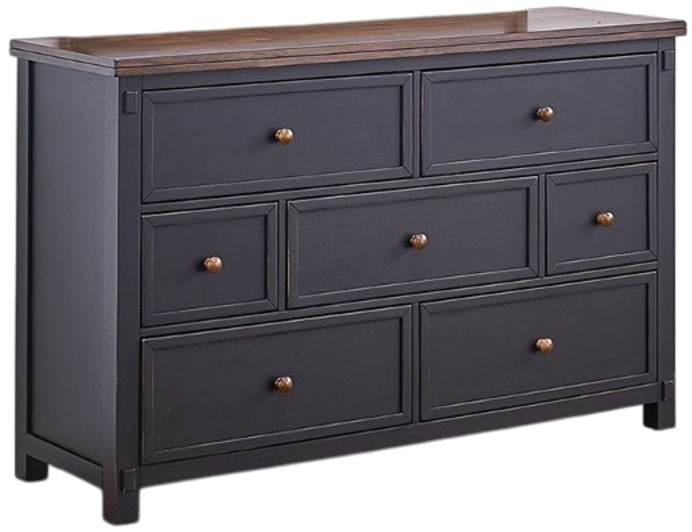 Stormy Ridge invites warm hospitality to the bedroom with its practical farmhouse style and generous footboard storage option. Simple elegance is achieved with classic moldings and coordinated wood hardware. Pronounced distressing in the chicory finish mimics the look of time-worn wood that is contrasted by the soft slate black paint.Read More