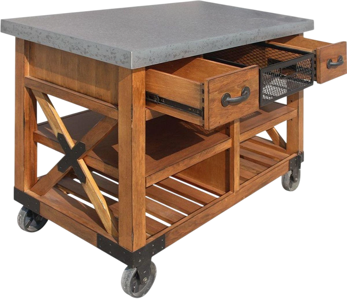 The Kailey kitchen cart with durable construction of wood and metal in a unique distress oak finish will become a stylish and function centerpiece of your home. The kitchen cart rests on casters, allowing you to move it easily. The storage space includes basket, drawers and open shelf.Read More