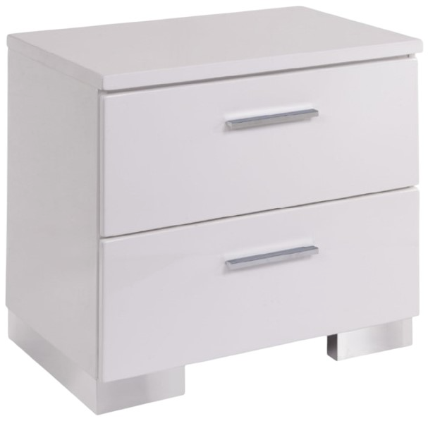 The Lorimar Chrome/White Nightstand by ACME Furniture features a sleek white finish complemented by chrome accents, offering a modern and stylish look. With two spacious drawers and streamlined hardware, it combines functionality and elegance, making it a perfect addition to contemporary bedroom decor.Read More