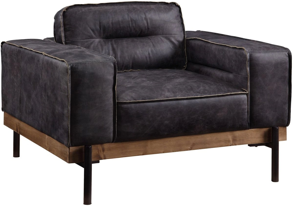 Part of the handsome Silchester Collection, this modern industrial chair will look great in any contemporary space. Contrast stitching makes the antique ebony top grain leather upholstery pop, and highlights the warm color of the wooden trim base. Metal spindle legs visually lighten the substantial proportions of this sofa set.Read More