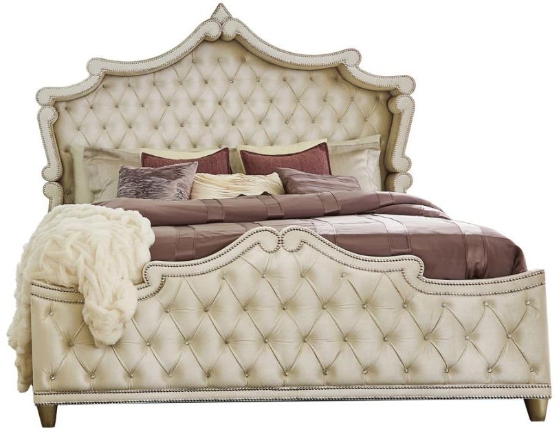 Create your ideal royal slumber chambers with this magnificent upholstered bed. Exceptionally elegant from all aspects, this piece is entirely upholstered on both the headboard and footboard. With button tufting and nail head trim accents. this piece is the epitome of style.Read More