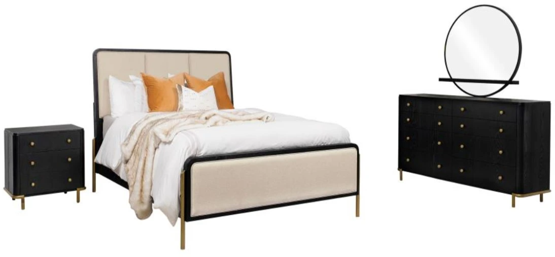 Coastal-inspired bedroom set with mid-century modern design elements