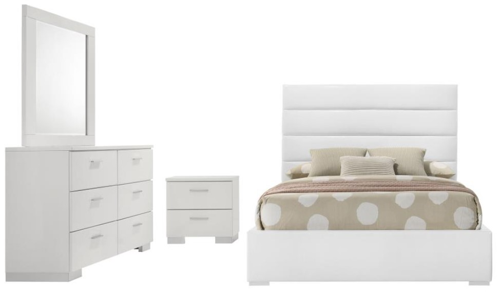 Includes: One (1) full bed, one (1) nightstand, one (1) dresser, and one (1) dresser mirror