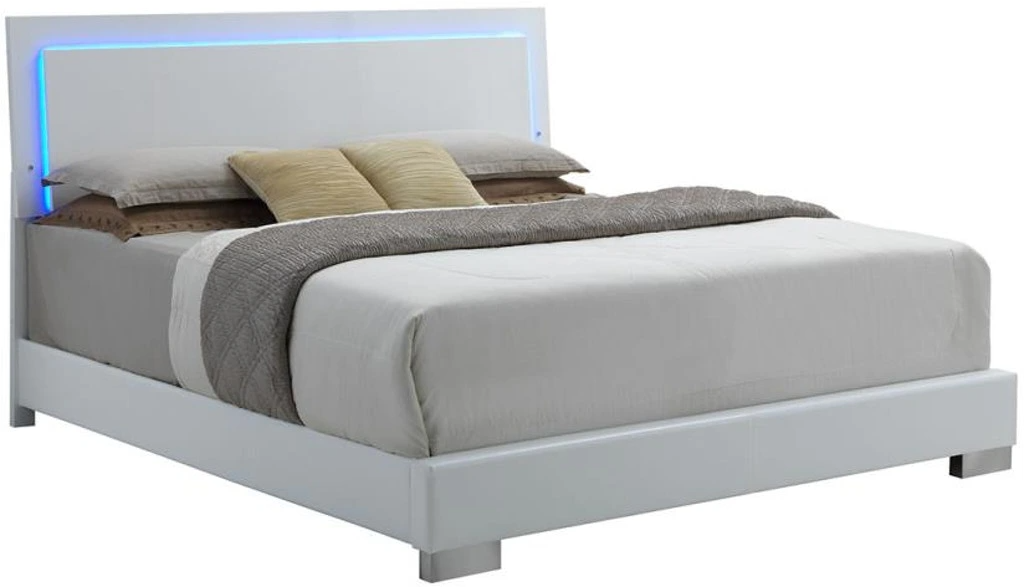 Light and airy, the Felicity collection turns your bedroom into a dreamy retreat. The glossy white finish, clean lines, and polished-chrome details breathe contemporary vibes that revitalize and soothe. Delight in the new energy and crisp feel of your sleep space with this Coaster® collection.