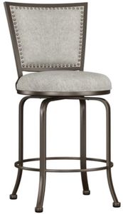 This bar stool is constructed with warm gray metal and finished with soft, performance-grade ash gray seating and back that hold up to high traffic. Plus, a 360-degree swivel allows for hours of conversation with your friends and family. Assembly required.