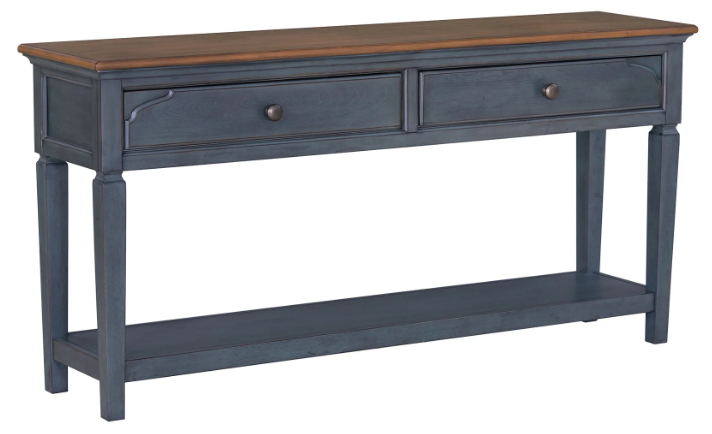 The Americana Sofa Table infuses a coastal charm into classic design, making it a standout piece in any living space. Its Corduroy Blue finish and lightly distressed look are complemented by brushed hardware, creating a modern yet timeless appeal. Perfect for displaying decor or organizing essentials.Read More