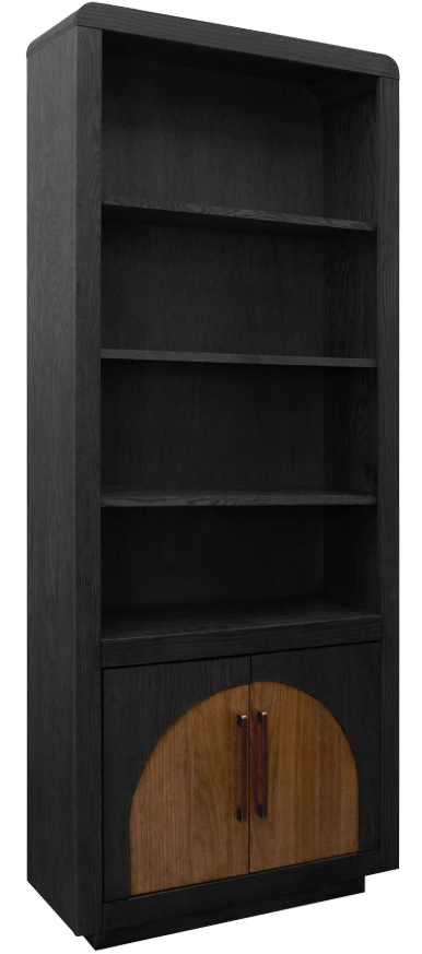 Bring Home the Eclipse 78-inch high bookcase pier for sophisticated, reimagined vintage style. Beautifully crafted from oak solids and veneers and walnut veneers, this bookshelf cabinet rests atop a crisp plinth base and features striking two-tone finish inlay arch panels on the doors that mirror the curves of the top corners.Read More