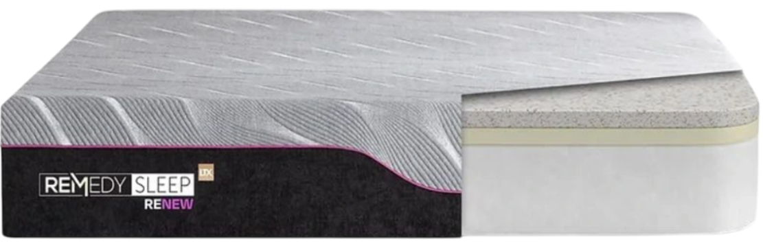 Experience enhanced rejuvenation with the Remedy Sleep Renew 11" Latex Foam Mattress. Crafted with sustainable Talalay latex and a triple-layer of copper-infused air foam, this mattress offers optimal cooling, supports proper spinal alignment, and alleviates pressure points for a superior sleep experience.Read More