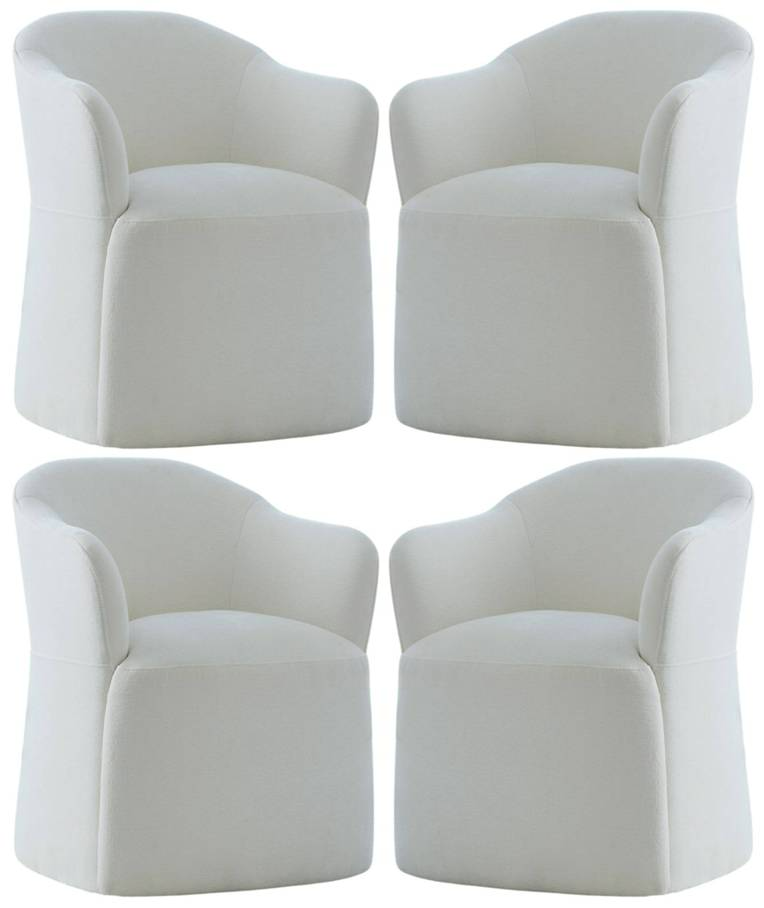 A perfect marriage of style and functionality designed to elevate your dining experience or home décor, this accent dining chair is fully upholstered in an Ivory fabric. With its gently sloping curves, arched cap rail, flared arms, and plush upholstery, this chair offers both comfort and sophistication in your style.Read More