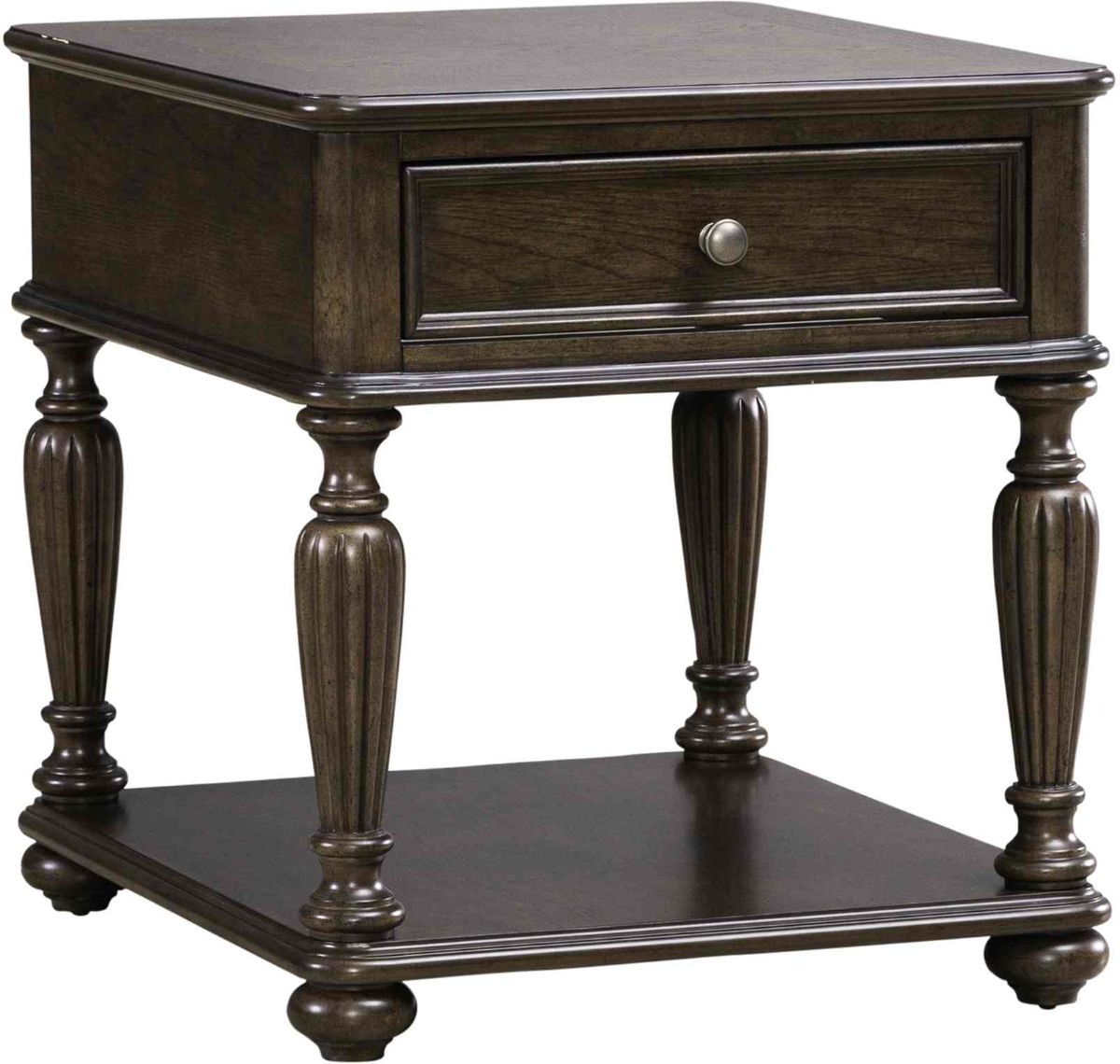 Liberty Allington Satin Sienna Rectangular End Table features traditional styling, antique brass knob hardware, and bun feet.Read More