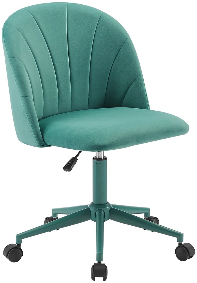 Shake things up in your home workspace with this chic aqua desk chair. Wrapped in soft velvet upholstery, this piece is as comfortable as it is eye-catching and easy to maintain. Its barrel-shaped back offers ergonomic support and features elegant channel stitching that adds depth and a subtle sophistication.Read More