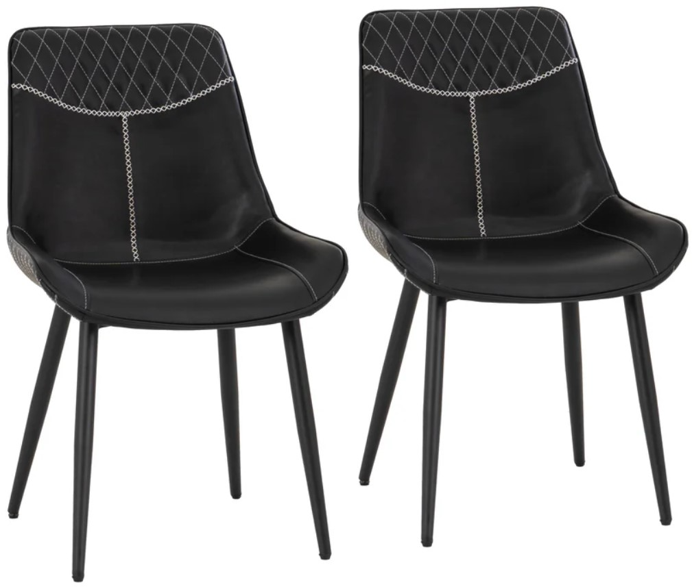 Adorned with black PU upholstery, these chairs offer a luxurious seating experience, while the scooped seat and white baseball stitching detail add a touch of elegance. With a weight capacity of 225lbs each, these chairs are sturdy and reliable for everyday use. Enhance your dining area with these chic and practical chairs, perfect for both formal dinners and casual gatherings.