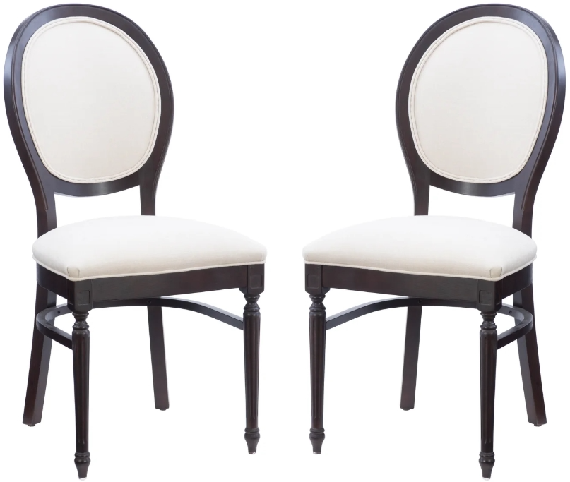 In a nod to Louis era French interior design, this pair of side chairs emanates an air of elegance through its clean lined silhouettes. The ovular backrest offers ample support with padded upholstery in neutral hues that match the densely cushioned seat.Read More