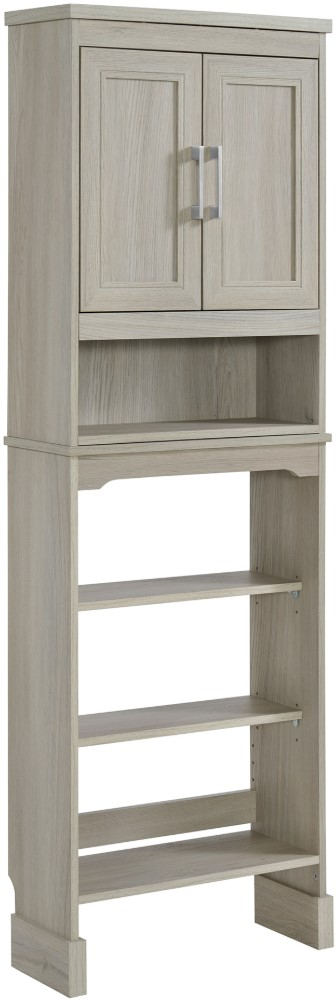 3-in-1 Wall/Floor Cabinet: This bath cabinet can be used in 3 distinct ways- as a 66" tall storage tower with lower shelves, an over-the-toilet storage tower, or separate it into a wall cabinet and matching floor cabinet for maximum flexibility