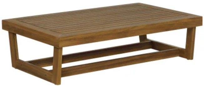 Built low and wide for casual gatherings, this outdoor cocktail table brings an understated architectural presence to patios and roof decks. Crafted from solid acacia wood with a warm teak-toned finish, its angular base and slatted tabletop naturally resist the elements while creating a sense of visual rhythm.Read More