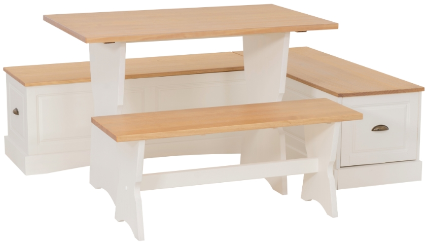 Transform your kitchen into a cozy gathering spot with our charming nook, crafted from solid wood and durable Elliot is pine. Featuring a beautiful honey natural top and a sleek white base, this piece combines style and practicality.Read More