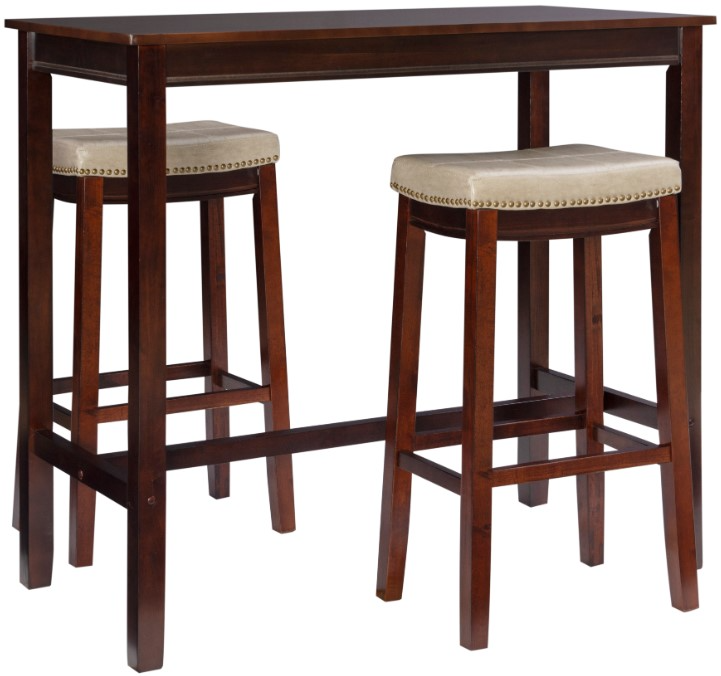 Complete 3-Piece Set: Includes a bar-height pub table and 2 matching stools to provide a coordinated, space-saving dining solution. Ideal for compact kitchens, breakfast nooks, or apartment living