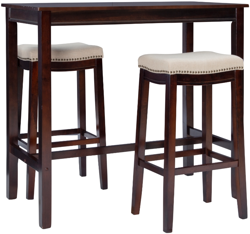 Complete 3-Piece Set: Includes a bar-height pub table and 2 matching stools to provide a coordinated, space-saving dining solution. Ideal for compact kitchens, breakfast nooks, or apartment living
