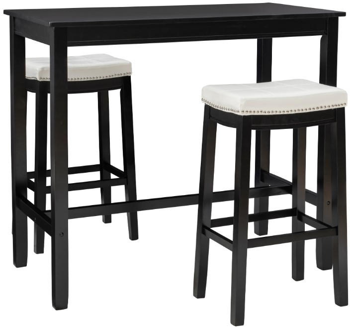 Complete 3-Piece Set: Includes a bar-height pub table and 2 matching stools to provide a coordinated, space-saving dining solution. Ideal for compact kitchens, breakfast nooks, or apartment living