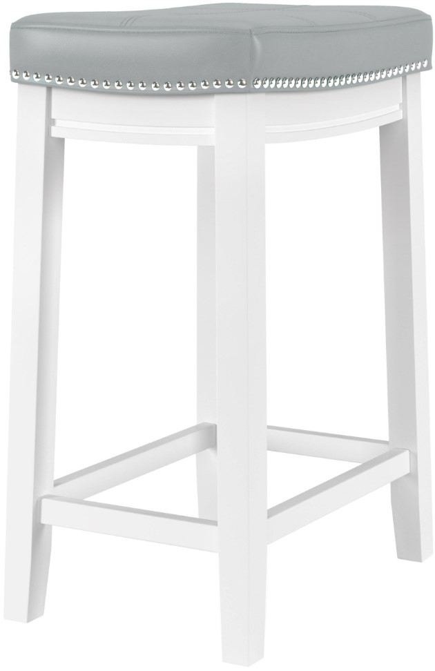 Elevate the seating in your farmhouse kitchen or transitional home bar with this elegant counter stool. Featuring light-grey faux leather over a subtly contoured seat, this plush perch is as comfortable as it is chic. Silver nailhead trim and double-needle stitching exemplify the sophisticated, vintage aesthetic to complement both traditional and modern decor with ease.Read More