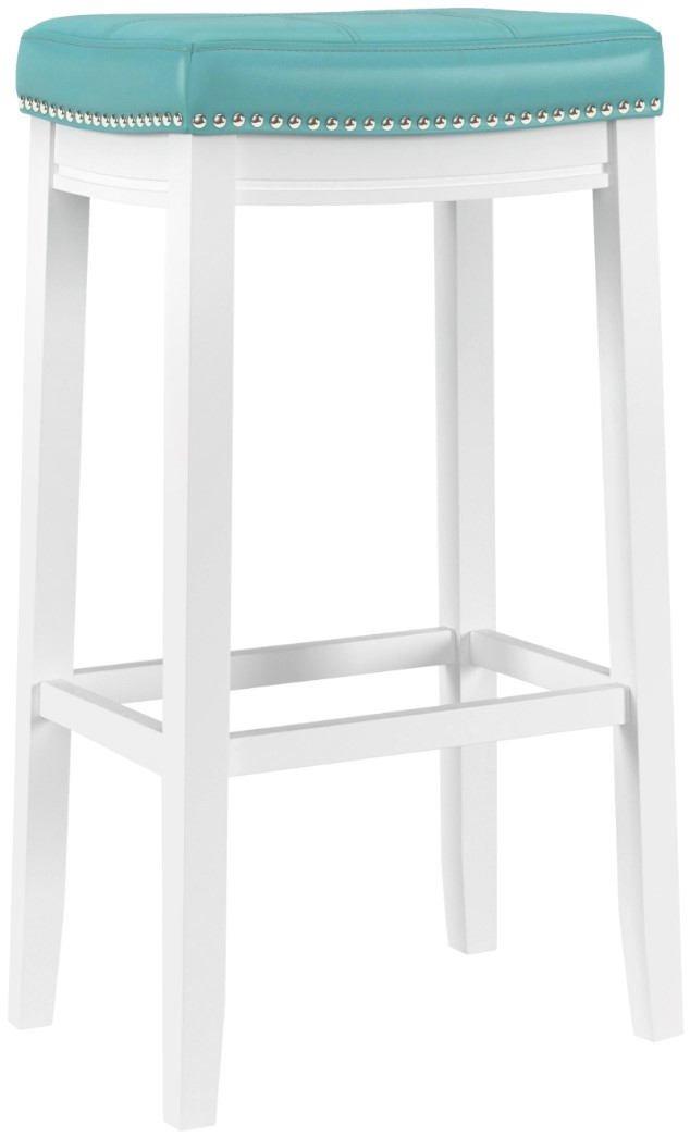Timelessly elegant, this barstool steals the show with its tailored details and coastal colorway. The contoured saddle seat, upholstered in a beautiful teal faux leather, provides plush comfort with a refined aestheticRead More