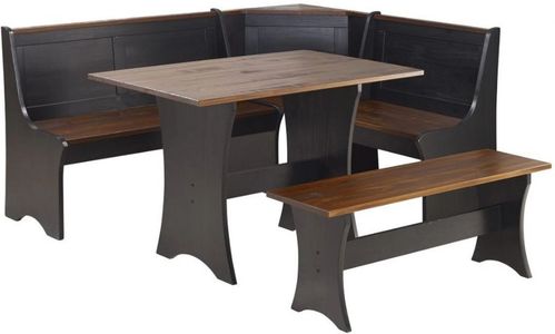 The antique black breakfast nook is a traditional combination of a black base with warm plank wood table top, seat and accent touches. Can configure in either left or right handed to conform to your unique requirements.Read More