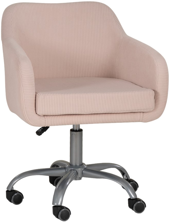 Add a touch of personality to your office with this chic chair, available in black terry loop, pink corduroy, and white sherpa fabric options. Soft, textured fabric provides a cozy feel, and the silver powder-coated base offers lasting durability with a modern flair.Read More