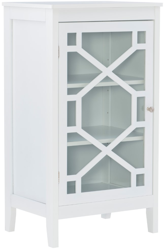 This small cabinet is a versatile accent piece, fit for any room in your home. The cabinet features a single designed glass door front that adds interest and appeal to the streamlined frame. Inside, three shelves provide ample storage space for all of your essentials.Read More