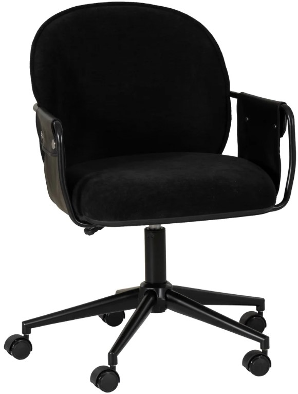 Elevate your workspace with this chic office chair, available in bold black or sophisticated olive green. Designed for both style and comfort, it features 100% polyester upholstery accented by black buttoned faux leather straps on the arms for a touch of elegance.Read More