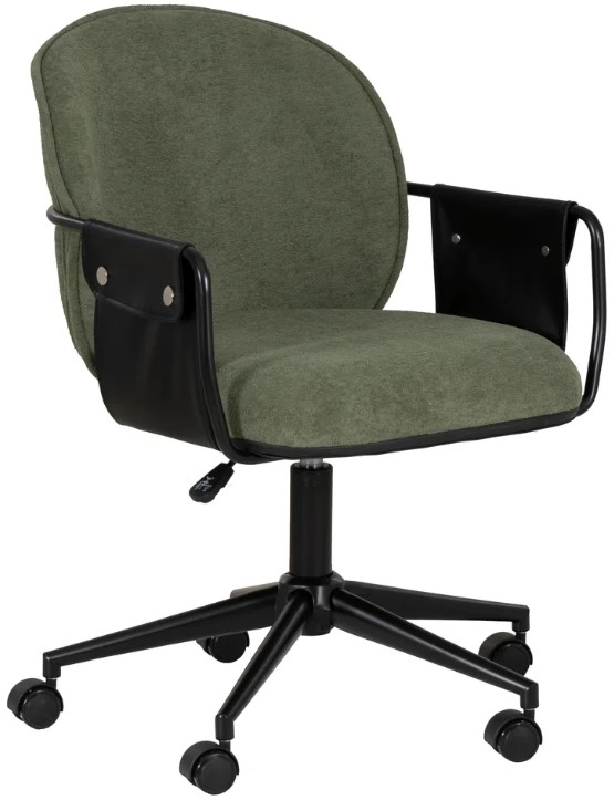 Elevate your workspace with this chic office chair, available in bold black or sophisticated olive green. Designed for both style and comfort, it features 100% polyester upholstery accented by black buttoned faux leather straps on the arms for a touch of elegance.Read More