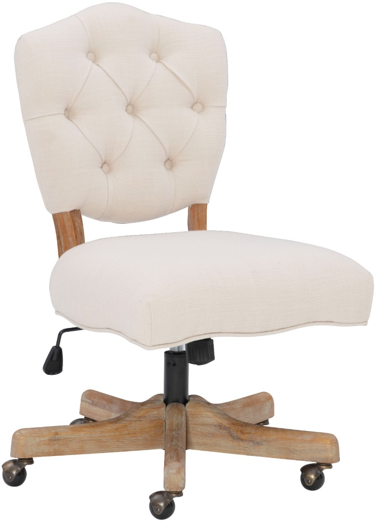 The detailed tufted back and padded Gray seat brings out the chair's timeless design. The gray wash base accents the chair and offers a rustic feel. From its adjustable height, classic style, and structured form this piece will add charm and comfort to any home office or workspace.Read More