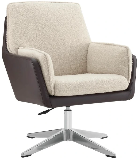 Designed with more than just a modern aesthetic in mind, this swivel chair brings comfort and convenience to the forefront. A luxurious seat wrapped in soft grey sherpa fabric invites you to sink in and unwind, while the sleek black faux leather shell adds a refined outer layer.Read More