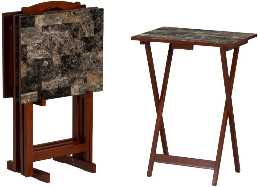 5-Piece Set: Includes four foldable tray tables and one coordinating stand for easy storage