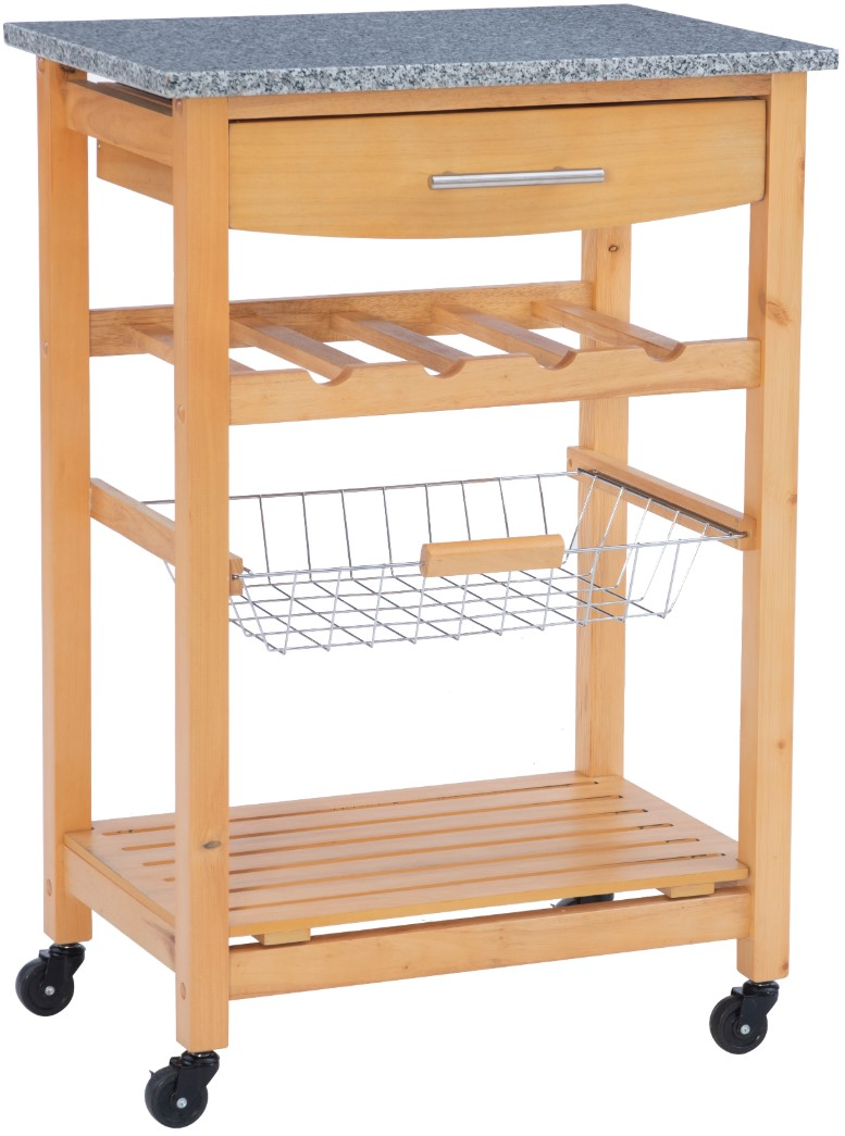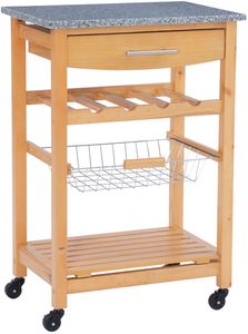 A contemporary take on storage and display, this efficient kitchen island expands your kitchen work space in a compact silhouette. Equipped with a fixed shelf, pull out drawer and slide-out basket overtop locking caster wheels, you can easily keep cooking and cleaning essentials within reach, making this kitchen cart perfect.Read More