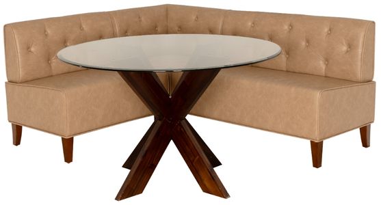 Crafted for conversation and constructed for everyday living, this 2-piece nook set is a chic, space-savvy dining solution. The L-shaped banquette is upholstered in mottled tan faux leather, boasting the upscale look of vintage hide with the durability and easy maintenance of modern materials.Read More