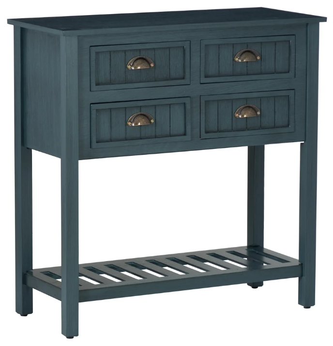 Style meets function with this console, a compact accent piece with rich color and classic character. Finished with subtle rub-through details, this four-drawer console adds coastal-inspired charm and versatile storage to any space.Read More