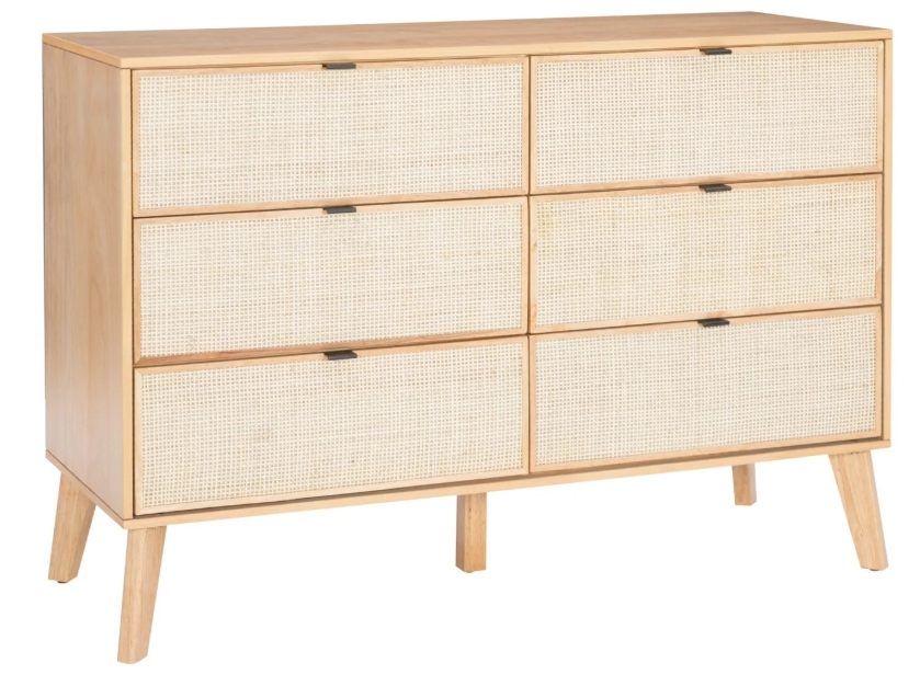 Refresh your space with a dresser that’s as chic as it is functional. This six-drawer beauty combines the timeless charm of mid-century modern design with the natural warmth of woven rattan cane. Clean lines, a natural wood finish, and understated metal drawer pulls create a look that feels both fresh and effortlessly sophisticated.Read More