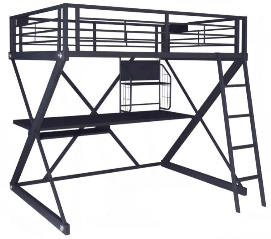 Black hi-pressure laminated work surface give this study loft the rugged construction to survive in any youth environment