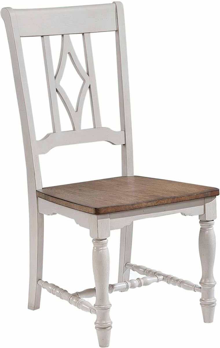 The Corner Stone Side Chair is a spacious and sturdy seating option from the casual dining collection. It features a two-tone Grey & Oak finish and includes intentional distressing for a farmhouse or rustic-chic look.Read More