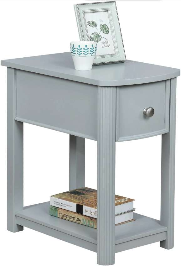 The TEI gray 12" chairside table with 1 drawer and 1 fixed shelf offers compact functionality and reliable storage. Ideal for small spaces, it provides room for essentials, making it a practical addition to living rooms or bedrooms.Read More
