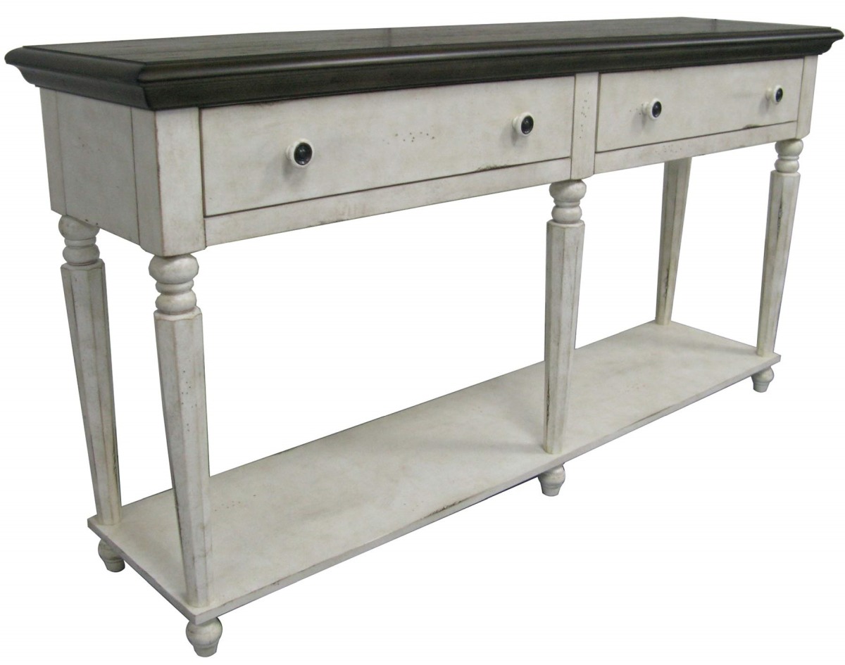 The TEI Vintage Estates Antique White/Dark Knotty Oak Sofa Table brings timeless charm and character to any space. Featuring an antique finish with contrasting white and dark knotty surfaces, this piece offers robust construction and refined details, perfect for a classic, inviting living area.Read More