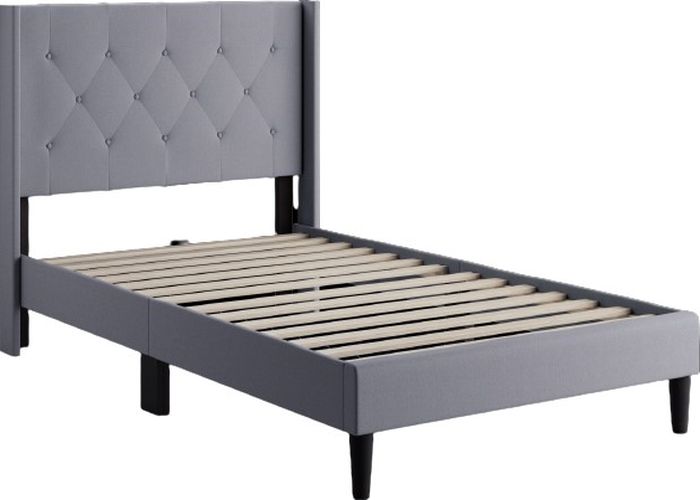 The Weekender® Drake full platform bed features a wingback headboard with diamond tufting and plush padding.Read More
