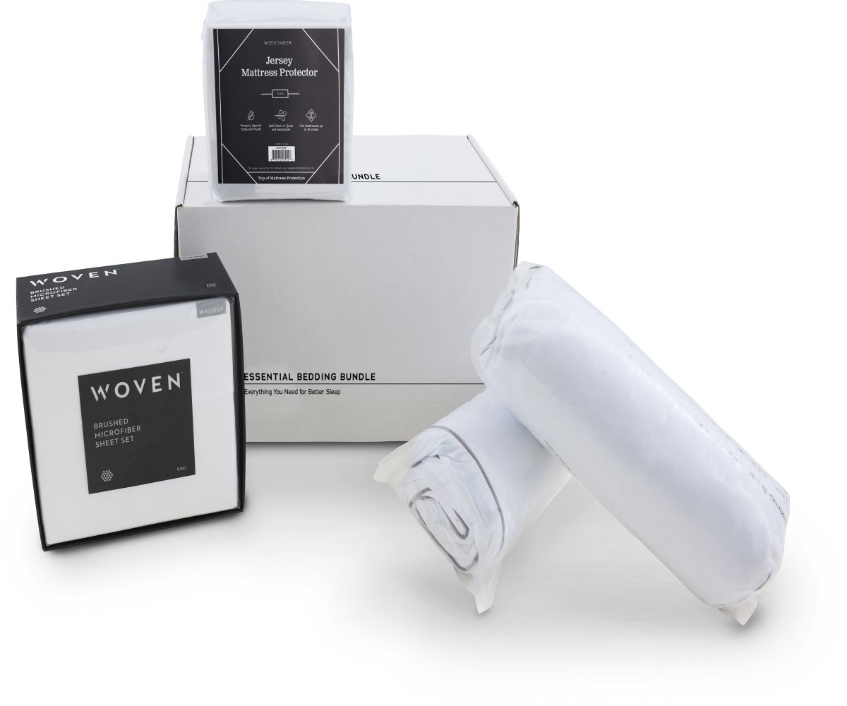 One top of bed accessory bundle with everything your customer needs for a good night’s sleep. This all-in-one bundle box features a Weekender jersey mattress protector, Malouf™ microfiber sheet set, and Weekender shredded memory foam pillow(s). Two pillows are included with Full-Cal King sizes, with one pillow included in Twin and Twin XL bundles.Read More